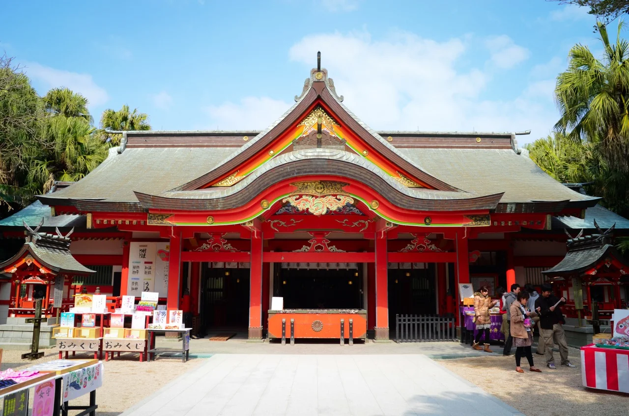 The shrine is for marriage and so many engaged and married couples visit it. It is dedicated to the dieties Hoori and Otohime. I found their story really interesting. This is from Wikipedia,