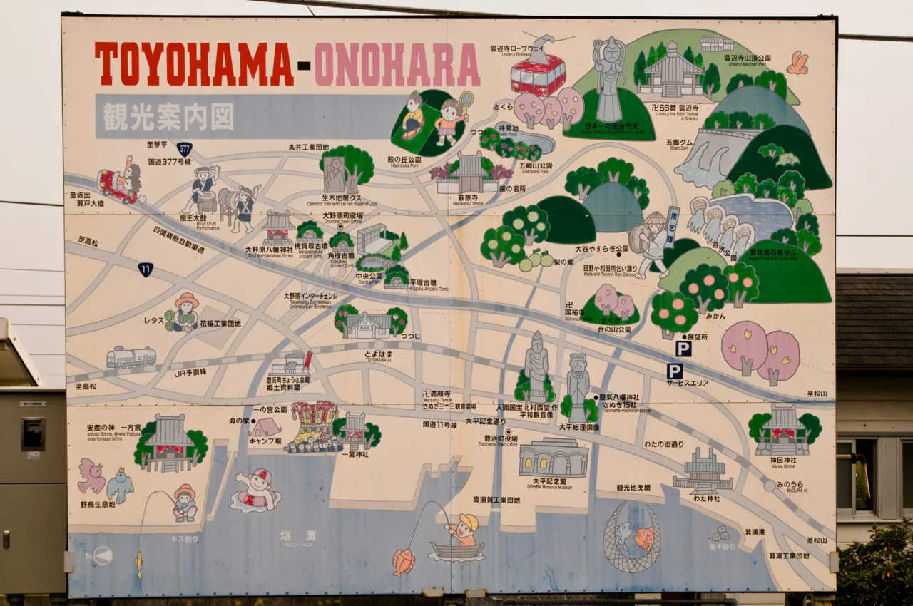 Here is a map at our train station! All of these new attractions came as quite the surprise to us. We had no idea there was actually anything in Toyohama, besides rice farms. It’s a pretty small city… Tyler MacBethNovember 16, 2010 Facebook0