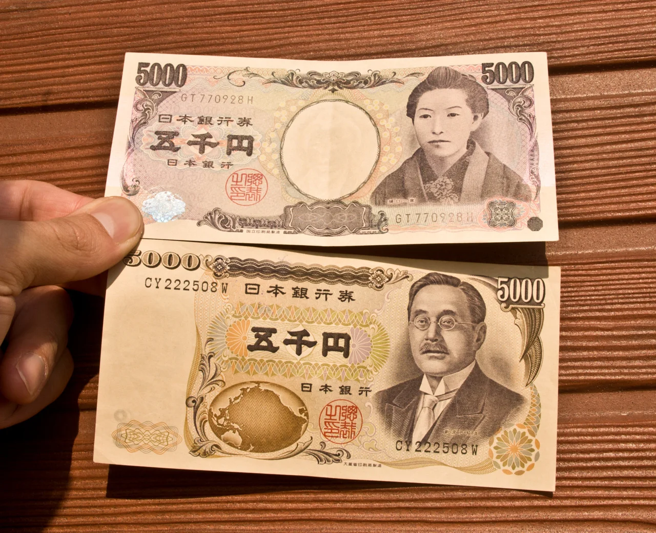 The 5,000 Yen bills.