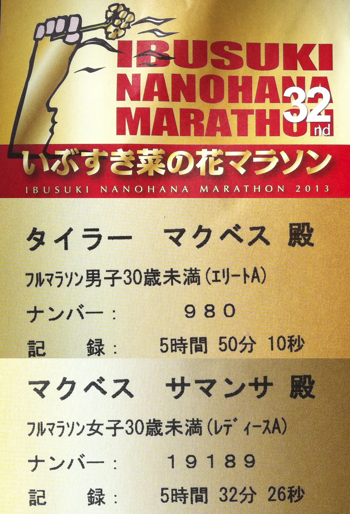 Our race results. Tyler on top, Sam on bottom.