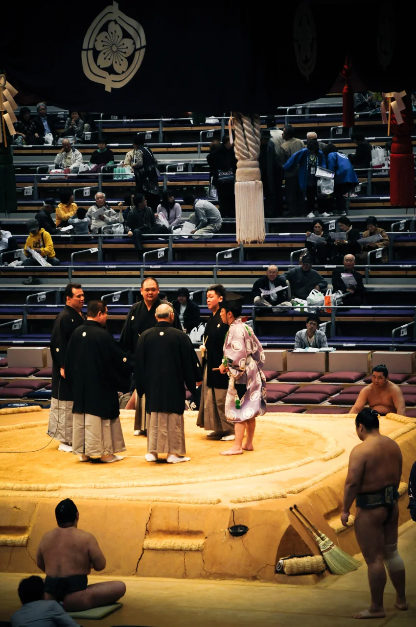 The Sumo judges having a discussion about the referee’s call. These “men in black” have full say over anything during the matches. Tyler MacBethDecember 6, 2011 Facebook0